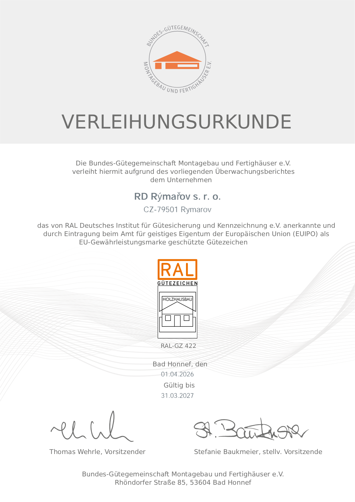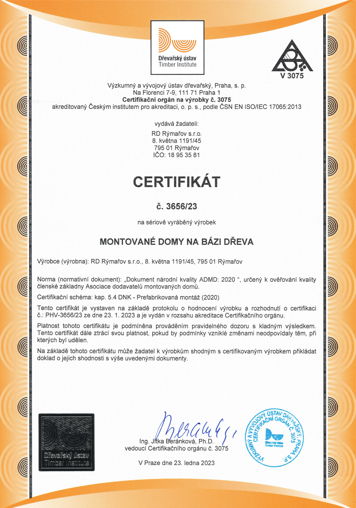 RD Rýmařov kładzie nacisk na bezpieczeństwo zdrowotne używanych materiałów.. Spełniają one wszystkie wymagania krajowych norm i surowych norm tradycyjnych krajów Unii Europejskiej. Management firmy wspiera zrównoważone zarządzania lasami i jest zobowiązany do wdrożenia i utrzymania wymagań łańcucha produktów leśnych w ramie PEFC zgodnie z dokumentem CFC 2002:2011. www.pefc.cz.